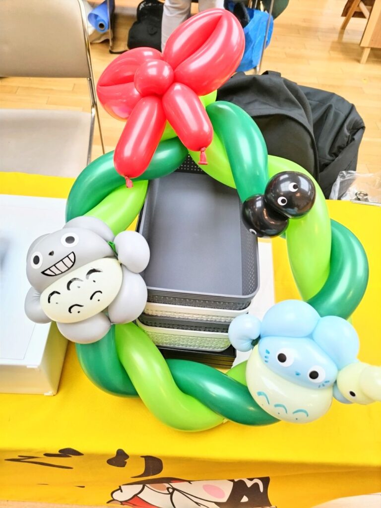 おやきの完売後にゆったりとしていたところ、入り口近くでバルーンアートをされていた方に、ジブリモチーフのバルーンをいただきました!